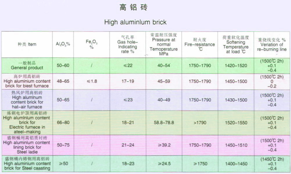 氧化鋁含量在48%以上的一種中性耐火材料。由礬土或其他氧化鋁含量較高的原料經(jīng)成型和煅燒而成。熱穩定性高,耐火度在1770℃以上?乖暂^好。用于砌筑煉鋼電爐、玻璃熔爐、水泥回轉爐等的襯里。